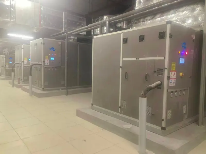 Het warmtepompsysteem speelt een cruciale rol bij het handhaven van de klimaatstabiliteit binnen de faciliteit het hele jaar door.